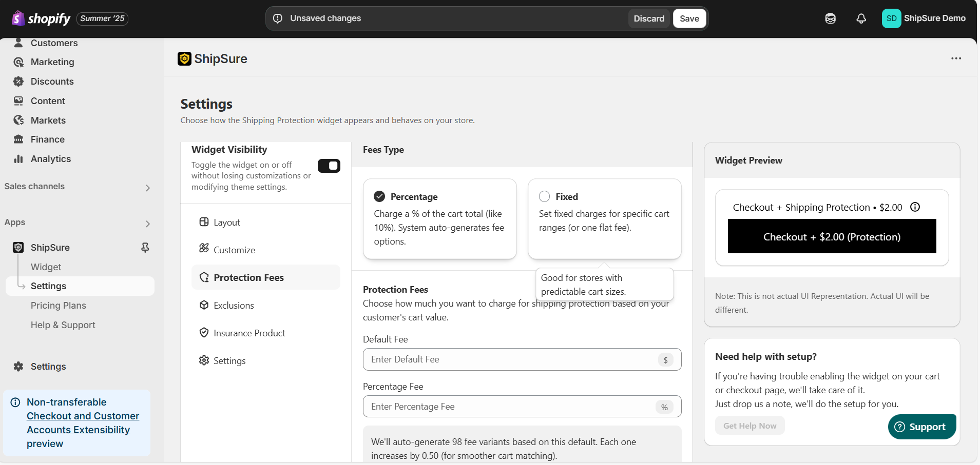 ShipSure provides two distinct types of shipping protection fee structures to help you balance flexibility, simplicity, and revenue protection based on your business model: