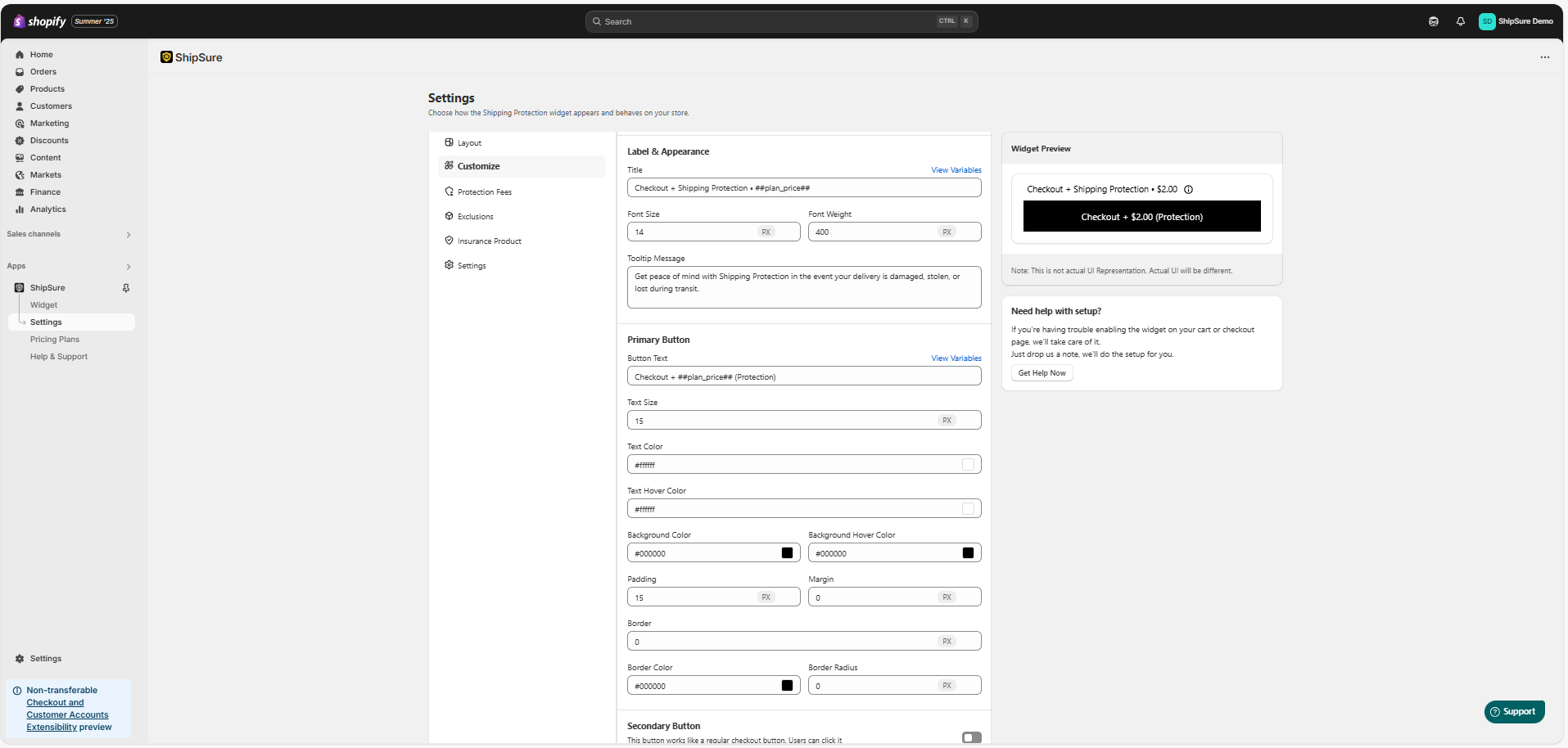 The Primary Button will display with Shipping Protection.