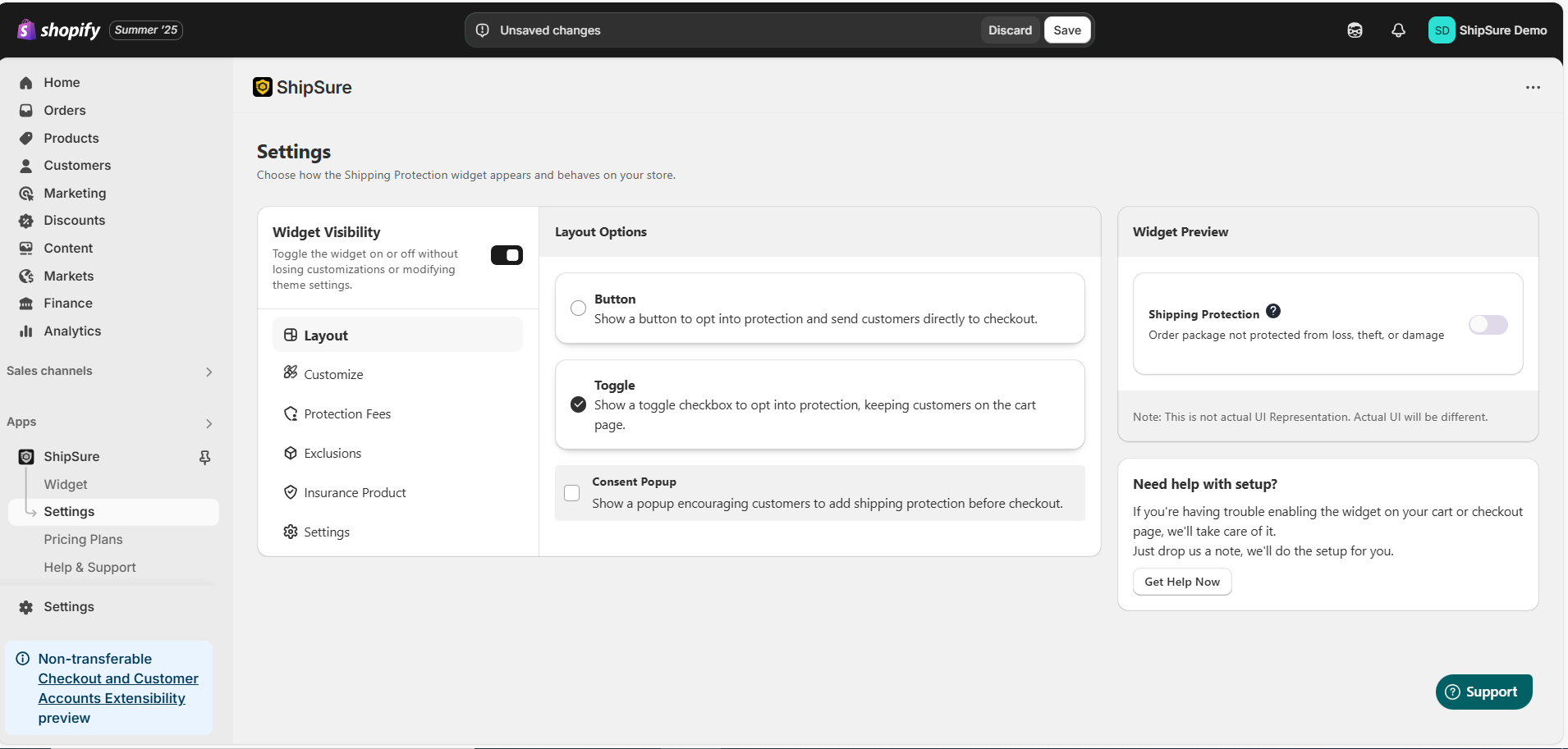 If you face any issues while setting up the Toggle Widget or using ShipSure, feel free to reach out to our support team: