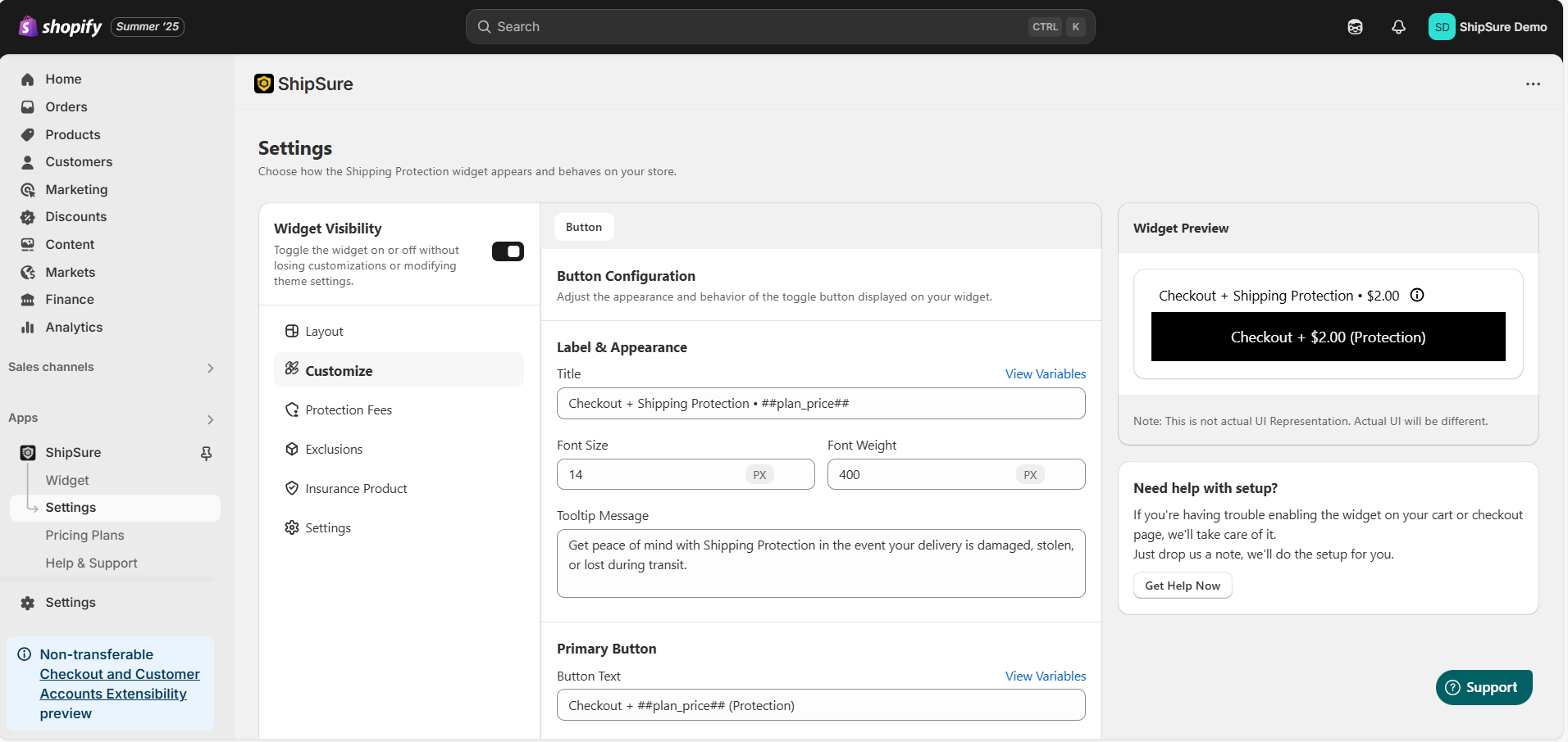 With ShipSure, you can fully customize the Button Widget to match your store’s branding and offer a seamless experience to your customers. Follow the steps below to adjust its look and content: